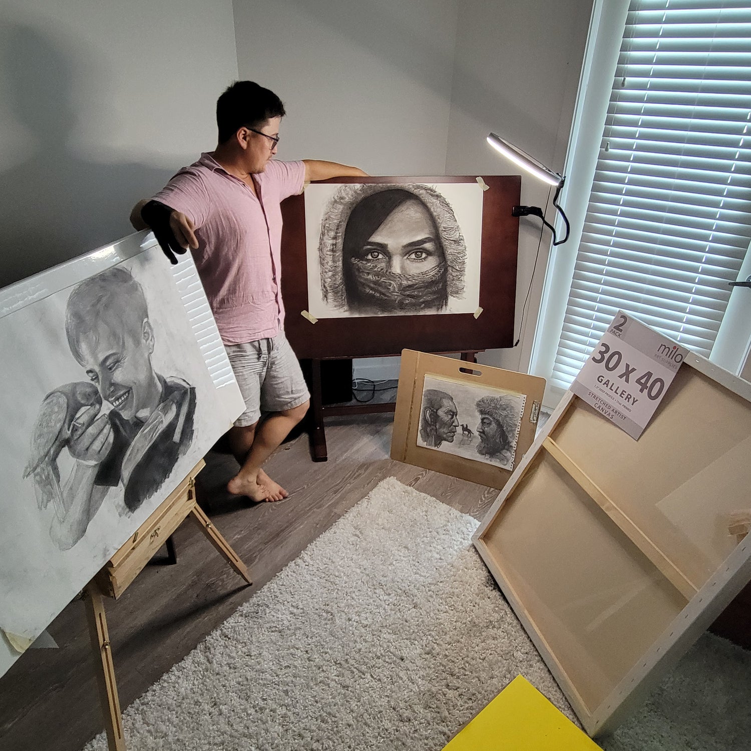Each piece is hand-drawn using charcoal and pencil, crafted with precision and emotion to capture the soul of my subjects.